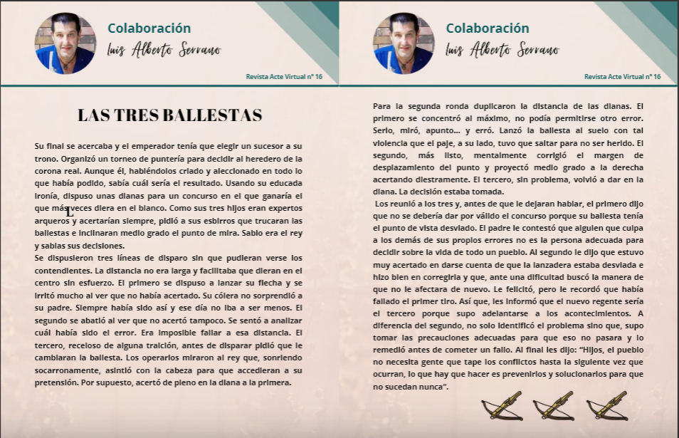 Mi relato «Las tres ballestas» sirve de colaboración en el nº 16 de la Revista ACTE VIRTUAL de la Asociación Canaria de Escritores: