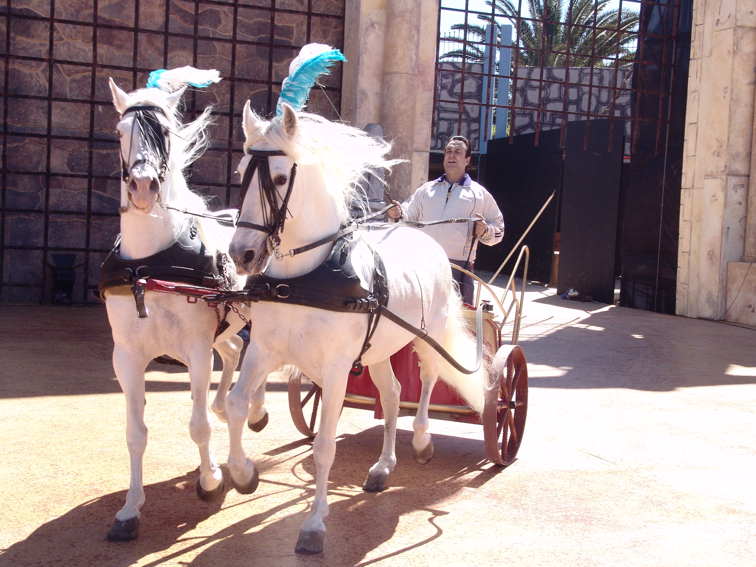 Ya habíamos ensayado la obertura el día anterior y «alguien», la noche antes de la gala, ordenó barnizar el suelo para que brillaran más las luces. Lo que consiguió fue que resbalaran los dos caballos que iban a aparecer en escena. El carnaval estaba dedicado a Roma y en la obertura ensayamos una especie de «película de romanos». En una parte de ella, se escapaba un esclavo y luego volvía en una cuadriga con caballos blancos a salvar Roma.