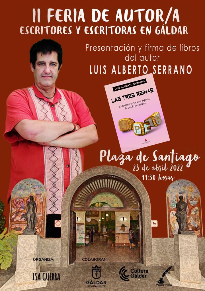 «Las tres reinas» en la II Feria de Autor/a de Gáldar. 18 abril, 202227 abril, 2022 / Luis Alberto Serrano El sábado día 23 a las 11:00en la Plaza de Santiago de Gáldaren el marco delII FERIA DE AUTOR/Apresentaré mi novelaLAS TRES REINAS Tu voto:Compártelo: Haz clic para compartir en X (Se abre en una ventana nueva) X Haz clic para compartir en Facebook (Se abre en una ventana nueva) Facebook Me gusta Cargando... Relacionado
