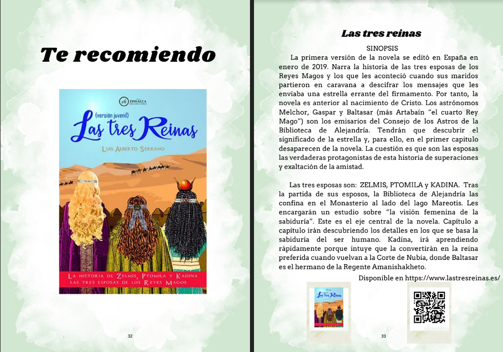 La Revista ME GUSTE LEER por MST recomienda mi novela «Las tres Reinas» 18 diciembre, 202218 diciembre, 2022 / Luis Alberto Serrano La RevistaME GUSTA LEER por MST(Merche Soriano Trapero) recomienda mi novela LAS TRES REINAS La revista entera la pueden leer aquí:https://literatureandfantasy.blogspot.com/2022/12/revista-me-gusta-leer-por-mst.html Tu voto:Compártelo: Haz clic para compartir en X (Se abre en una ventana nueva) X Haz clic para compartir en Facebook (Se abre en una ventana nueva) Facebook Me gusta Cargando... Relacionado