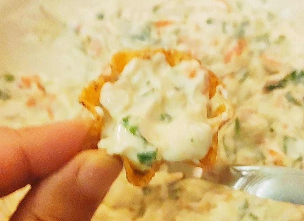 Echar el queso en un bol y diluirlo un poco con leche para que quede más consistencia de papilla. Picar chiquitito el palo cangrejo y el cilantro y mezclarlo con el queso diluido.