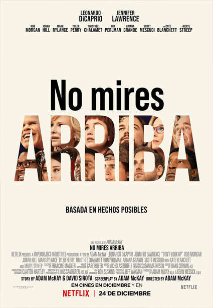 Me encanta la frase de David Sirota, coautor de la idea de esta película, en la que dice que “si no entiendes esta historia es porque, seguramente, seas un personaje de ella”. Esta película es una mordaz recreación irónica de la situación actual del mundo. El problema, desde el principio, está claro: ¡vamos a morir todos! Con esa premisa, el doctor en astronomía Randall Mindy (DiCaprio) intenta convencer a la presidenta del gobierno de los Estados Unidos (Meryl Streep) de que el meteorito descubierto por la ayudante Kate Dibiasky (Lawrence) va a impactar y a destruir la tierra. El caso que le hacen me hizo recordar al poema “vuelva usted mañana” de Larra.