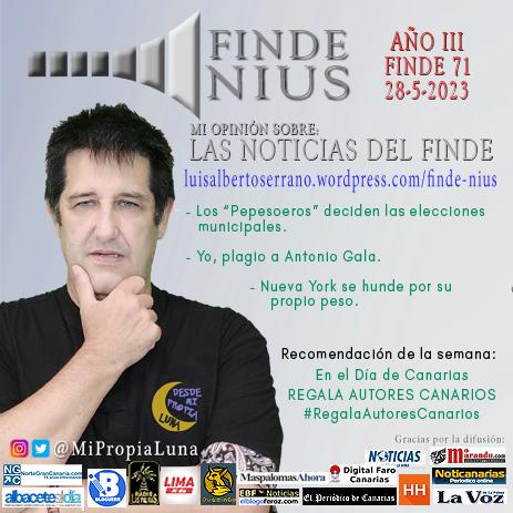 Mi opinión de la semana en FINDE NIUS (año 3 – finde 70) 22 mayo, 2023 / Luis Alberto Serrano / 2 comentarios LEER LAS NOTICIAS